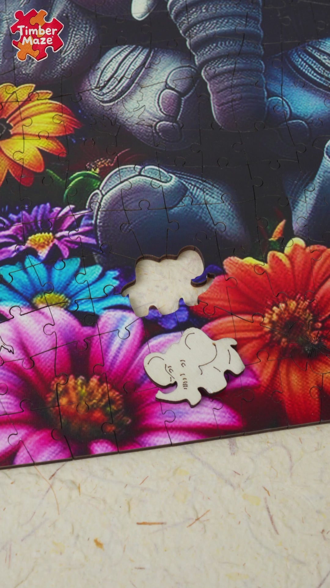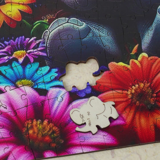 Baby Elephant with Flowers - Wooden Jigsaw Puzzle