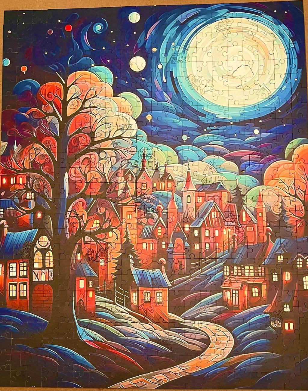 Moonlit Fantasy Village - Wooden Jigsaw Puzzle